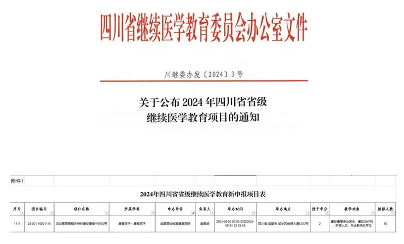 6月,成都点点taptap重庆时时彩锦宸康复医院又一项目获批四川省省级继续医学教育项目。